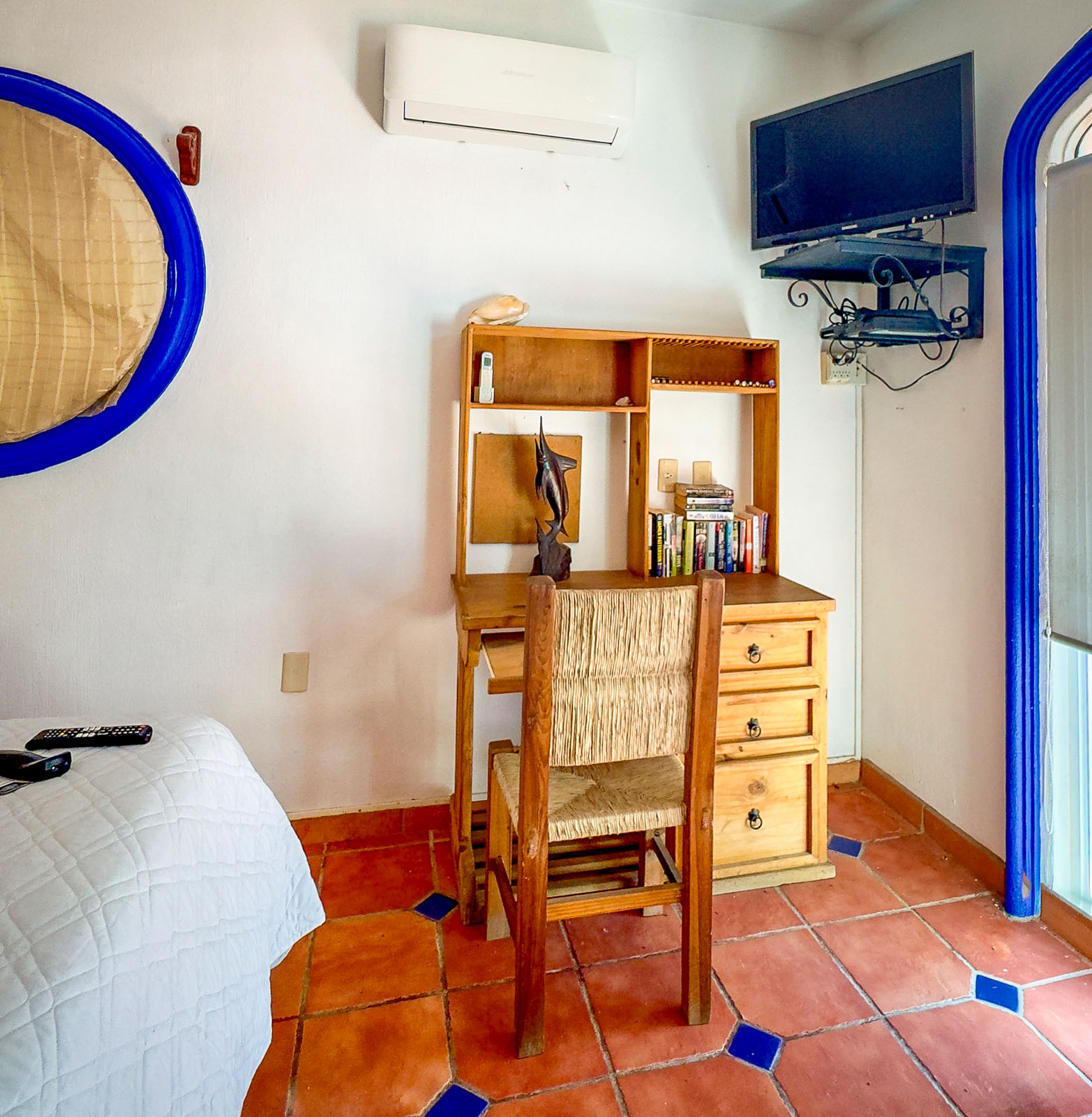 Each casita comes set up with the basics you actually need. Fresh towels, linens and pillows. Bedroom air conditioning. Fans in the living areas. A TV and Wi Fi. A small desk, wardrobe, hangers and a luggage rack so you are not living out of a suitcase. The kitchens have dishes, cutlery, glassware, a coffee maker, kettle, pots and pans. It is simple, tidy and well equipped for normal day to day living.